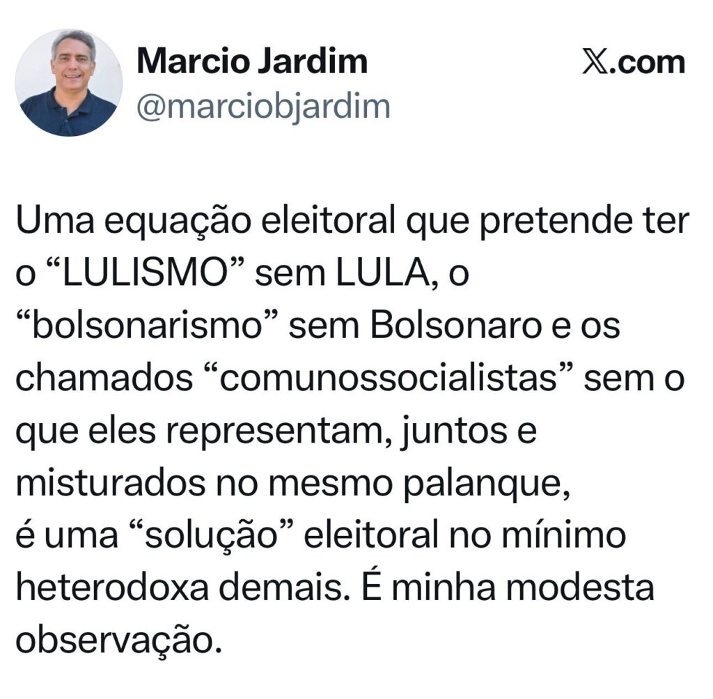 O petista Márcio Jardim não falou, mas referia-se a Eduardo Braide (PSD) quando mencionou a “equação eleitoral” que precisa ser resolvida para se ter lulistas, bolsonaristas e comunossocialistas em um mesmo palanque em 2026.