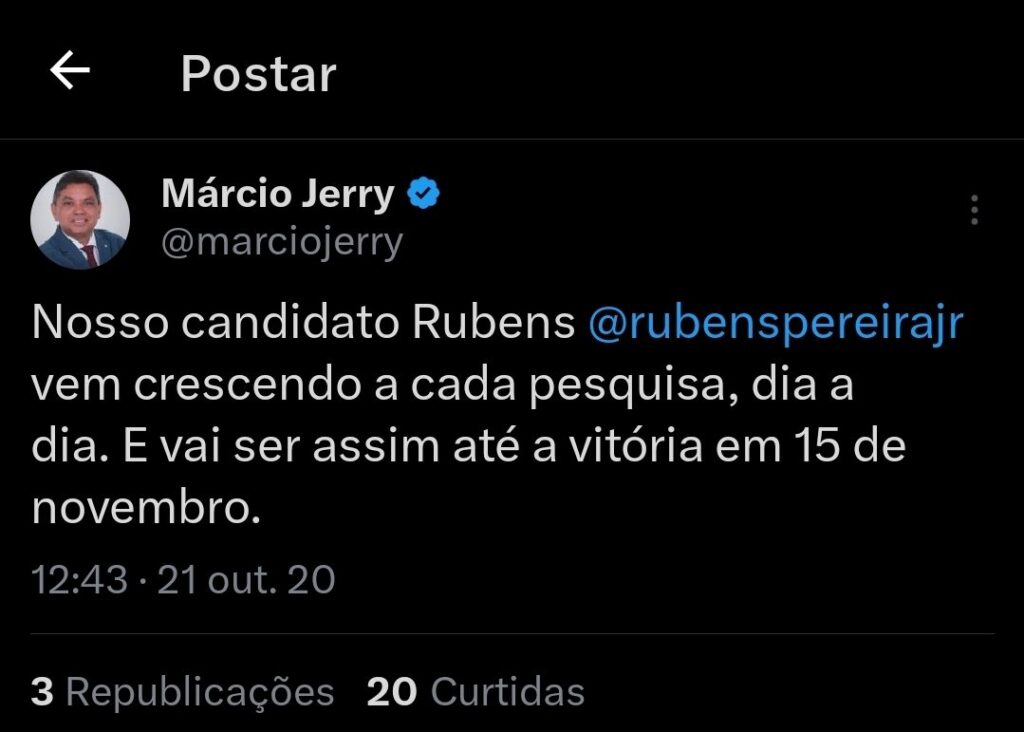Toda vez que Jerry fala de pesquisa para tentar levantar o ânimo dos aliados em relação ao seu candidato, eu lembro das “pesquisas” sobre as quais ele falava em 2020, para tentar manter viva a natimorta candidatura de Rubens Júnior (PT) à Prefeitura de São Luís.